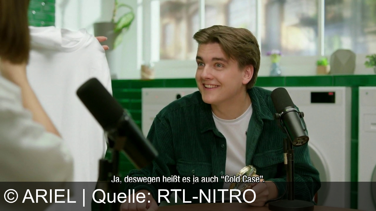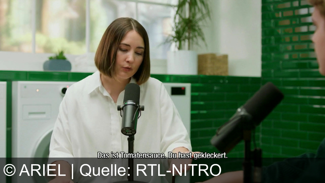 Werbung aus dem Jahr 2024 von Ariel in Österreich, mit dem von uns gewählten Titel: "Ariel All-in-1 Pods: Entfernen von Tomatenflecken bei 30 Grad - Humorvoll im Podcast-Setting!" mit der Kurzbeschreibung: "Ariel Pods mit Fleckenentferner bewältigen selbst eingetrocknete Tomatensaucenflecken bei 30 Grad. Der Spot betont die Effizienz bei niedrigen Temperaturen und spielt mit dem Begriff "Cold Case". Sicherheitshinweis: Außerhalb der Kinderreichweite lagern. Infos auf keepcapsfromkids.eu.". Diese Werbung thematisiert oder beinhaltet die Kategorien Waschmittel.