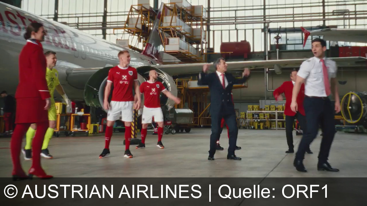Austrian Airlines bewirbt sich als offizielle Airline des österreichischen Fußball-Nationalteams und Star Alliance Partner. Die Werbung vermittelt Verbundenheit mit Österreich und Fußball und positioniert Austrian als stolzen, engagierten Partner für Team und Fans.