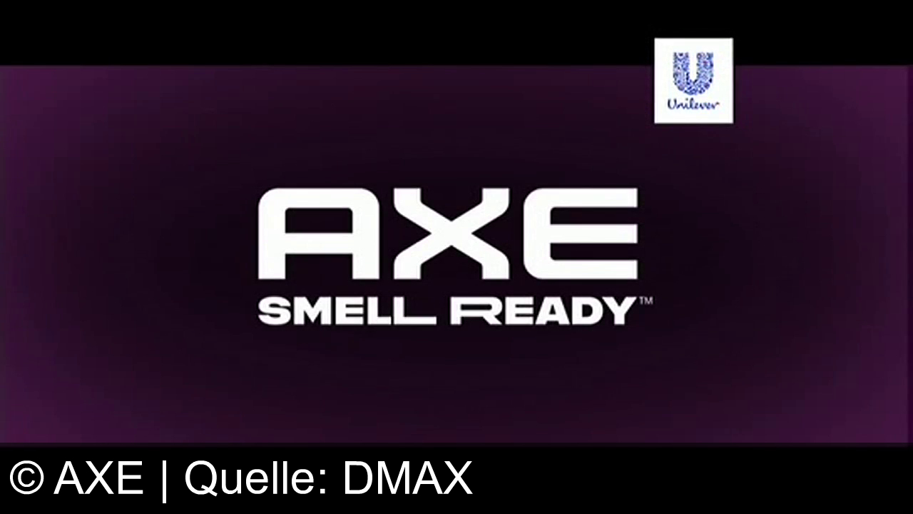 Dunkelvioletter Hintergrund mit dem weißen Text "AXE SMELL READY" in der Mitte. Oben rechts befindet sich ein Unilever-Logo.