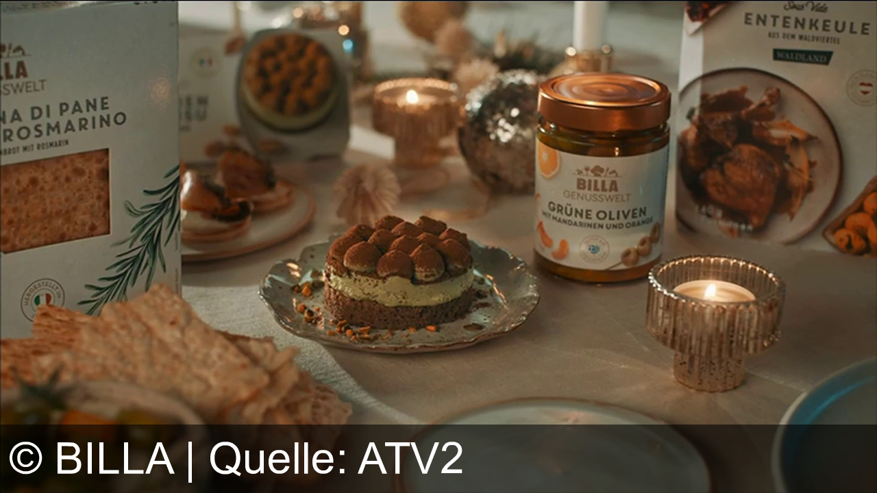 BILLA bewirbt festliche Feinkost-Produkte der Eigenmarke „Billa Genusswelt“ wie Entenkeule, grüne Oliven, Kuchen und Cracker, erhältlich bei BILLA und BILLA PLUS. Die Botschaft: So wird das Weihnachtsfest für Familie und Freunde einfach und genussvoll.