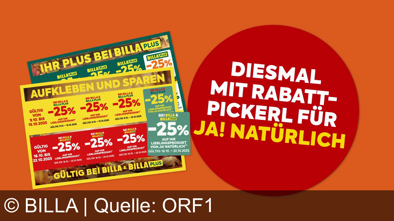 Werbung aus dem Jahr 2025 von Billa in Österreich, mit dem von uns gewählten Titel: "Im Oktober 2025: 25 % Rabatt-Pickerl bei Billa und Billa Plus – jetzt auch für Ja! Natürlich" mit der Kurzbeschreibung: "Sparen bei Billa & Billa Plus: Rabattpickerl für alle, jetzt auch für Ja! Natürlich. Billa hilft – einfach einlösen und voller Leben genießen!". Diese Werbung thematisiert oder beinhaltet die Kategorien Lebensmittel, Bioprodukte, Rabatt, Supermarkt, Obst & Gemüse.