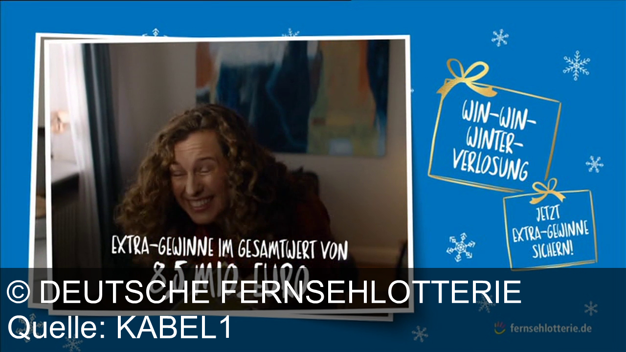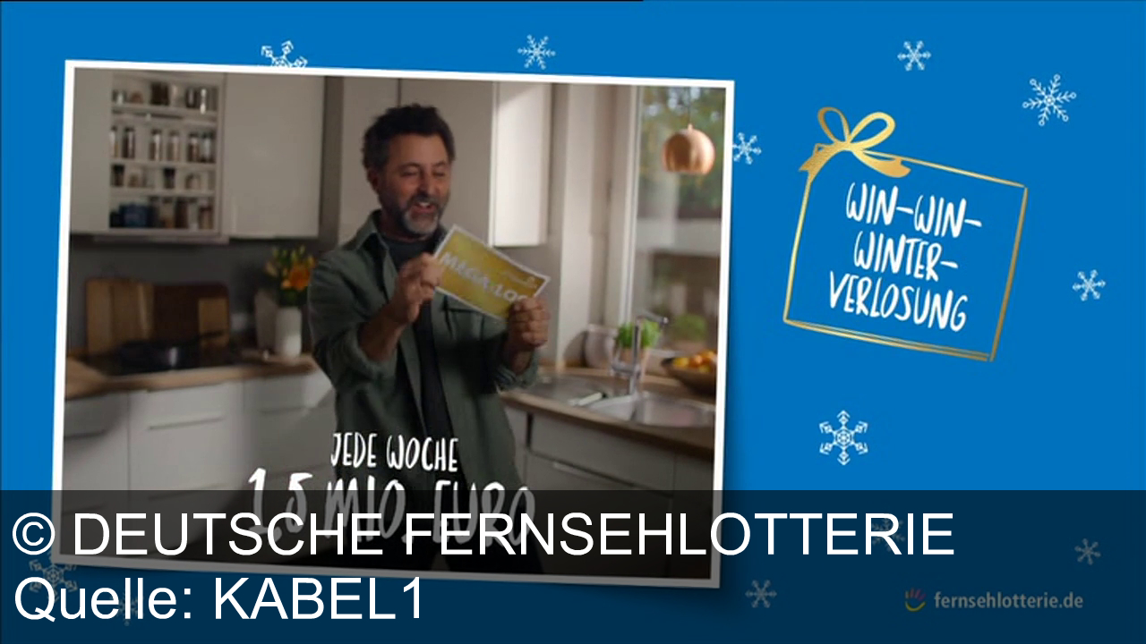 Werbung aus dem Jahr 2025 von Deutsche Fernsehlotterie in Österreich, mit dem von uns gewählten Titel: "Sichern Sie sich mit der Deutschen Fernsehlotterie Lose die Chance auf 1,5 Mio. € und Wintergewinne" mit der Kurzbeschreibung: "Verschenken Sie Freude mit der Deutschen Fernsehlotterie: Jetzt Los sichern, jede Woche Chancen auf 1,5 Mio. € und extra Gewinne bei der Win-Win-Winter-Verlosung. Du bist ein Gewinn!". Diese Werbung thematisiert oder beinhaltet die Kategorien Lotterie, Gewinnspiel, Geschenk.
