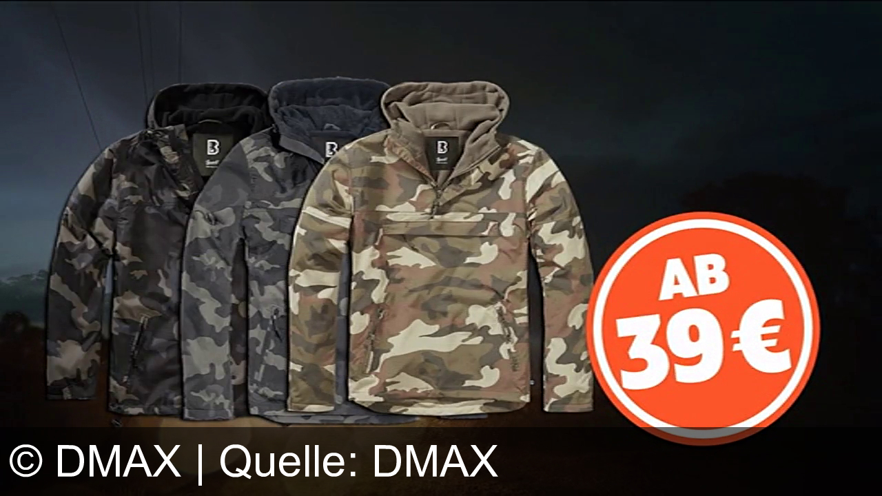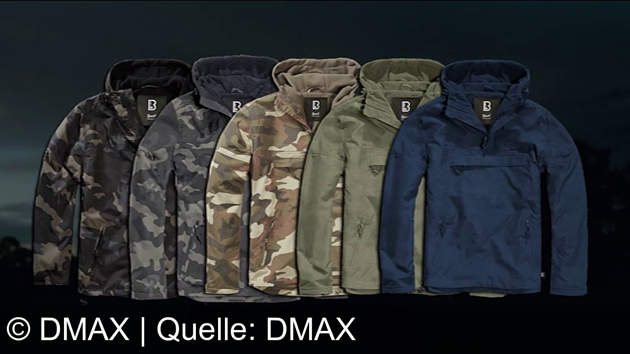 Im DMAX Shop gibt es die legendäre M65-Jacke und warme Windbreaker in vielen Styles und Größen bis 7XL, ab 39 €. Die Werbebotschaft: Robuste, stilvolle Jacken für Männer – echte Styles für echte Kerle. Jetzt erhältlich auf dmax-shop.de.