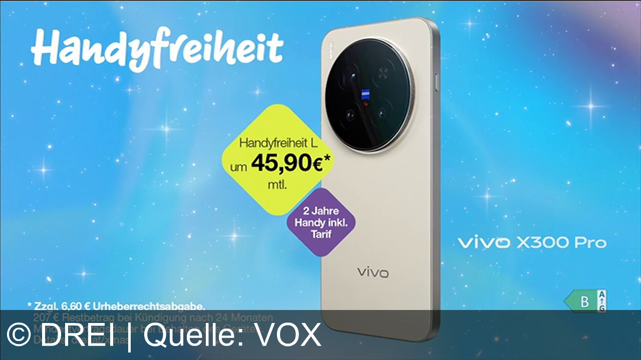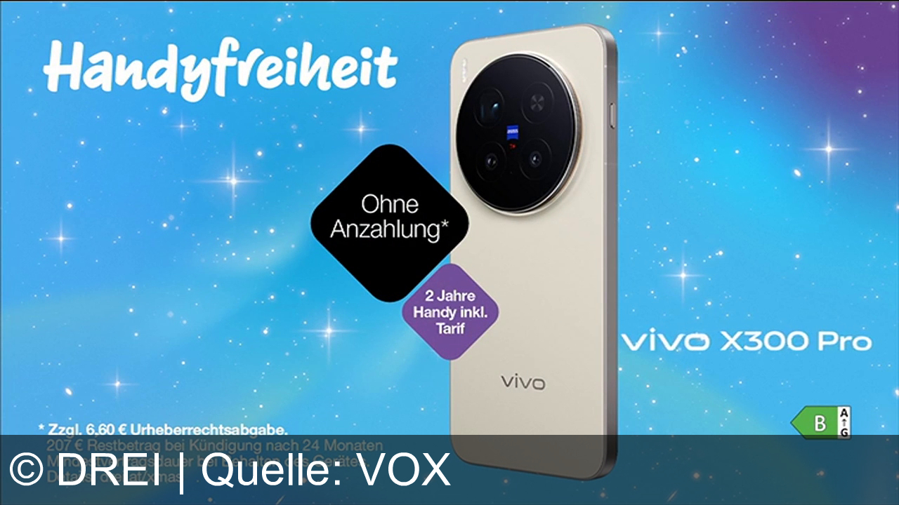 Das Vivo X300 Pro gibt es bei Drei im Tarif „Handyfreiheit“ ohne Anzahlung um 45,90 €/Monat inklusive Tarif. Drei betont Handyfreiheit und Familienmomente: Top-Smartphones zum Fixpreis, 2 Jahre alles inklusive, für alle – Freiheit hoch 3.