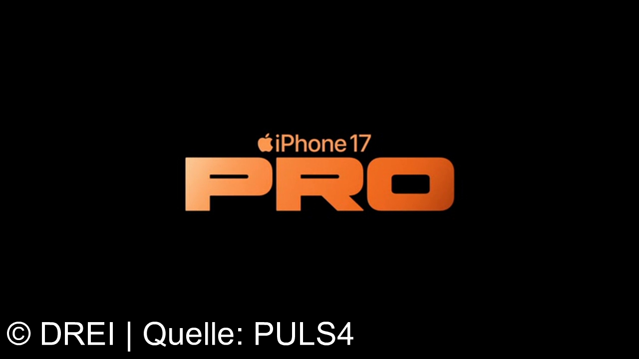 Schwarzer Hintergrund mit orangefarbenem Text "iPhone 17 PRO" in der Mitte. Das Apple-Logo ist über dem Wort "iPhone".