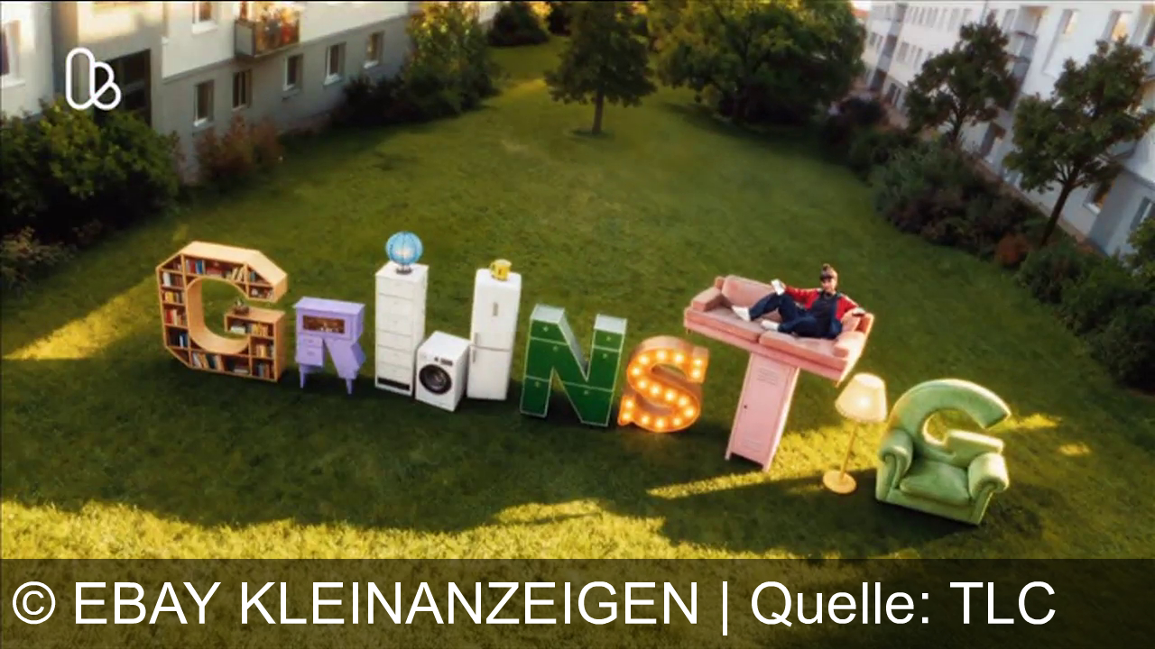 Werbung aus dem Jahr 2025 von Ebay Kleinanzeigen in Österreich, mit dem von uns gewählten Titel: "Kleinanzeigen Green Sunday: Nachhaltig shoppen, Schnäppchen sichern, kostenlos mit Hermes versenden" mit der Kurzbeschreibung: "Shoppe grünstig beim Green Sunday von Kleinanzeigen – nachhaltige Schnäppchen entdecken, mit kostenlosem Hermes-Versand. Große Wirkung, echt grün, echt günstig! Code: GREENSUNDAY". Diese Werbung thematisiert oder beinhaltet die Kategorien Möbel, Ohrringe, Fernseher, Kissen, Stuhl.