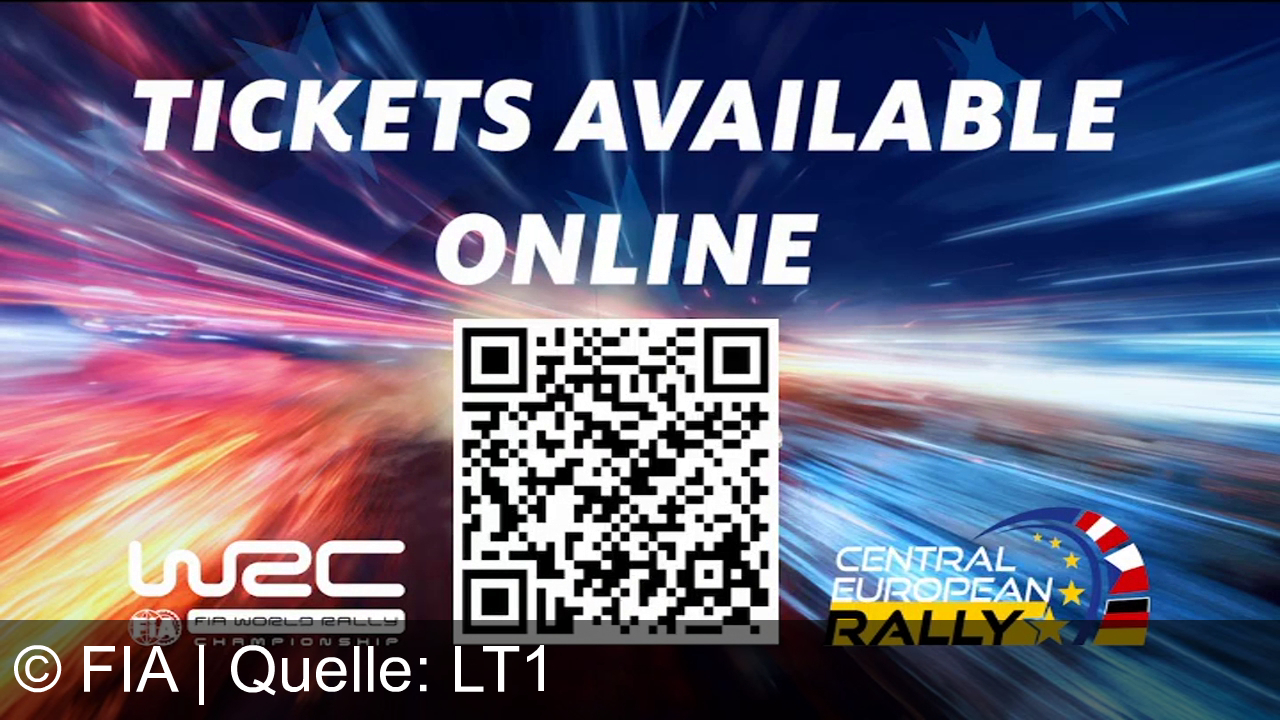 Bunte, dynamische Hintergründe. Großes "Tickets Available Online" in Weiß. QR-Code in der Mitte. Links unten Logos von WRC und FIA World Rally Championship. Rechts unten Logo von Central European Rally mit Fahnen-Elementen und Sternen.