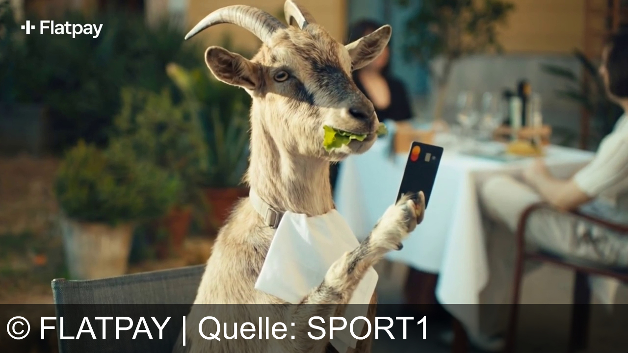 Flatpay Werbung aus dem Jahr 2026 in Österreich, mit dem von uns gewählten Titel: "Flatpay: So einfach bezahlen, dass es sogar eine Ziege kann" mit der Kurzbeschreibung: "Flatpay macht Zahlungen einfach: Vom Restaurantbesitzer bis zur kartenzahlenden Ziege – Umsatz rein, Sorgen raus.". Diese Werbung thematisiert oder beinhaltet die Kategorie/n Apps, Finanzen, Kreditkarte, Software, Versicherung