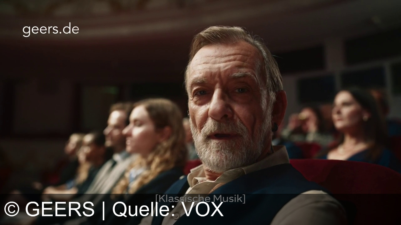 Ein älterer Mann mit Bart sitzt im Publikum eines Theaters oder Konzertsaals. Er trägt ein Hemd und eine Weste. Im Hintergrund sind weitere Personen in den Sitzen zu sehen, die aufmerksam nach vorne schauen. Oben links steht "geers.de" und unten im Bild ist die Untertitelung "[Klassische Musik]" sichtbar.