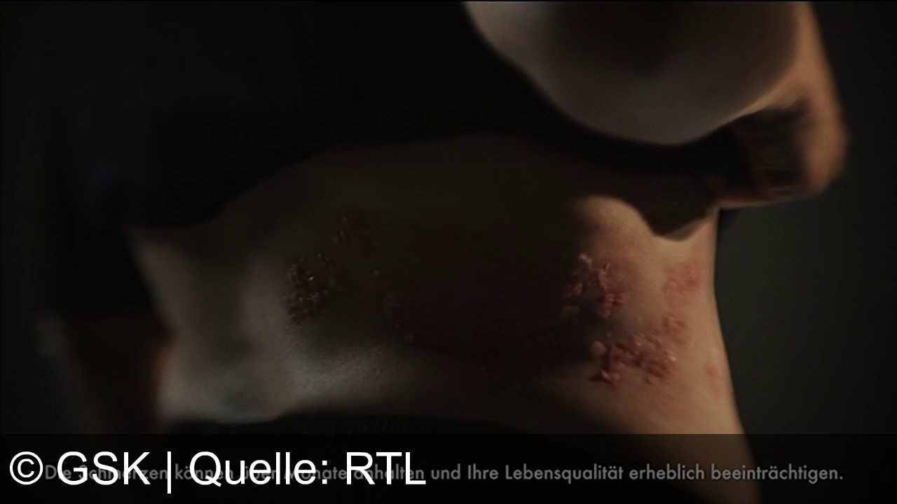 GSK bewirbt die Impfung gegen Gürtelrose für Personen ab 60 Jahren. Die Impfung schützt effektiv vor den langanhaltenden Schmerzen und Einschränkungen durch Gürtelrose. Beratung erhalten Sie beim Arzt oder in der Apotheke. Werbebotschaft: Impfen schützt!