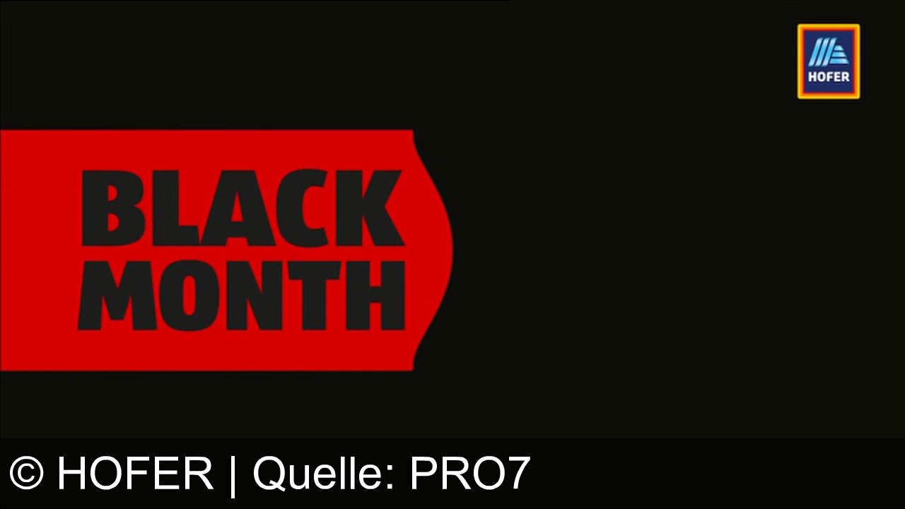 Schwarzer Hintergrund, rotes Banner mit „BLACK MONTH“ in schwarzen Großbuchstaben. Oben rechts ein Logo mit dem Schriftzug „HOFER“.