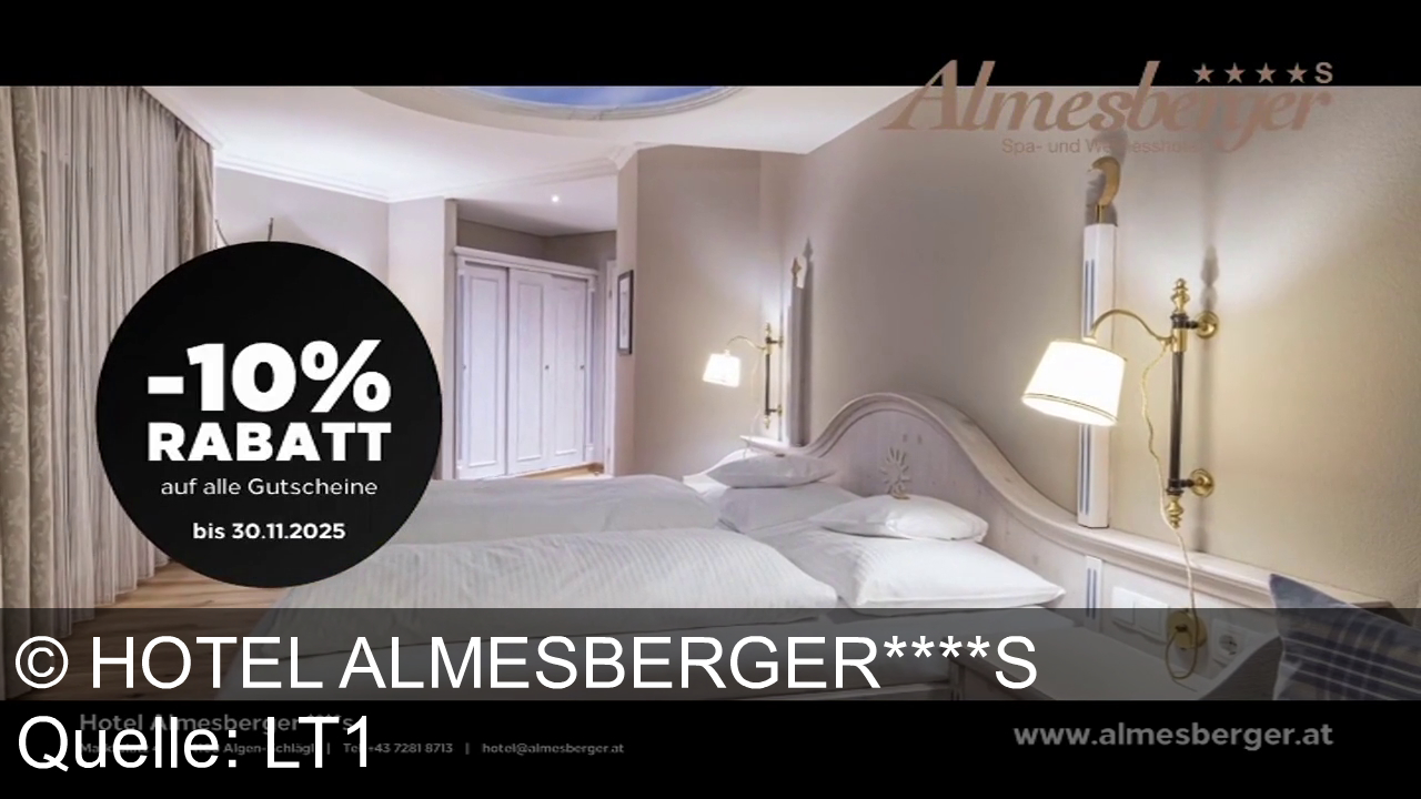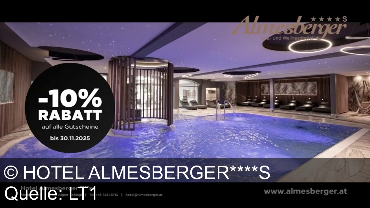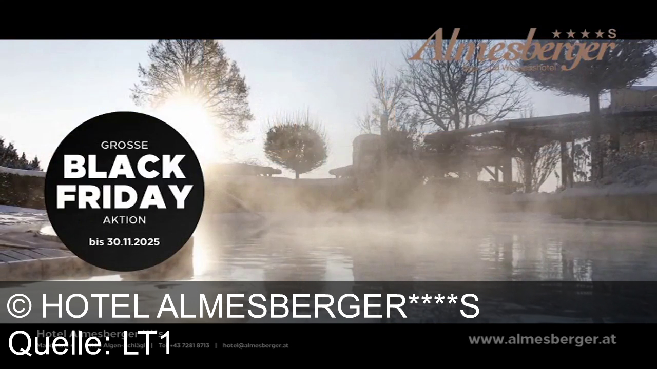 Hotel Almesberger in Aigen-Schlägl bietet luxuriöse Wellness-, Fitness- und Genuss-Erlebnisse. Im Rahmen der großen Black Friday Aktion gibt es 10% Rabatt auf alle Gutscheine im Online-Shop – nur bis 30.11.2025. Ideal für Erholung und Verwöhnmomente. Quelle: Dieser Spot wurde zuerst erkannt auf Lt1, (c) Hotel Almesberger****s