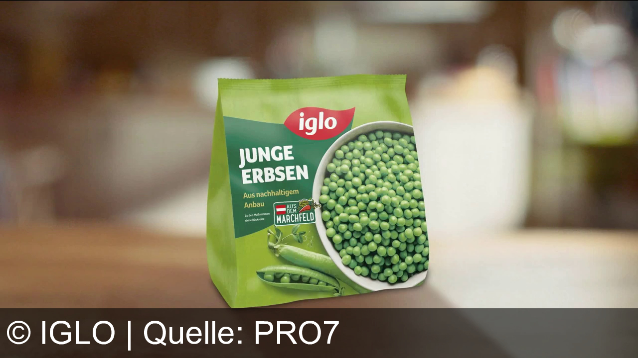 Iglo Werbung aus dem Jahr 2026 in Österreich, mit dem von uns gewählten Titel: "Iglo Junge Erbsen: Bewusster Genuss für die ganze Familie – Iss was Gscheit’s!" mit der Kurzbeschreibung: "Iglo Junge Erbsen aus dem Marchfeld: Die grünen Helden für dein hungriges Siegerteam. Iss was gescheites.". Diese Werbung thematisiert oder beinhaltet die Kategorie/n Gemüse, Lebensmittel, Tiefkühlkost, Kochen, Nudeln