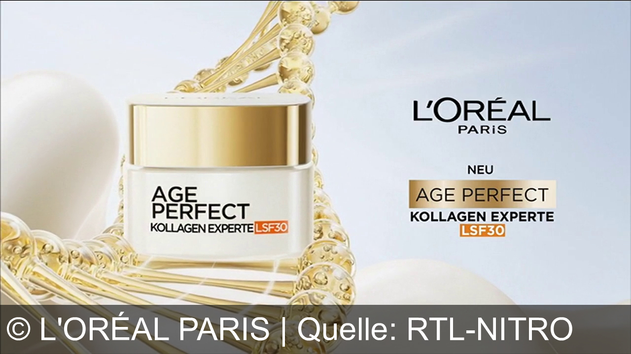 L'Oreal Paris bewirbt die Age Perfect Kollagen Experte Tagespflege mit LSF 30 sowie das passende Serum. Die Produkte enthalten Mikro-Kollagen-Peptide, um Kollagenverlust vorzubeugen, Altersflecken entgegenzuwirken und für eine festere, gestraffte Haut zu sorgen. Die Werbebotschaft betont mit dem Slogan, dass das perfekte Alter genau jetzt ist.