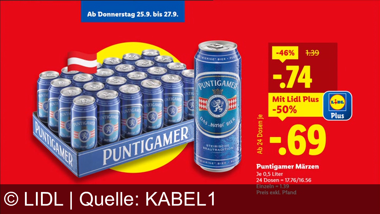 Lidl wirbt für Puntigamer Märzen Bier (ab 24 Dosen ab 0,69 € mit Lidl Plus) und Italiamo Pasta (500 g für 1,69 €). Die Spots betonen Frische, günstige Preise und Freude am Einkauf. Zentrale Werbeaussage: Bei Lidl günstig genießen und sparen – Lidl lohnt sich.