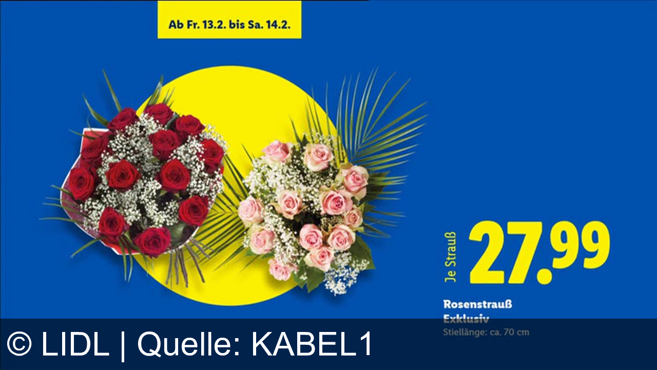 Werbung aus dem Jahr 2026 von Lidl in Österreich, mit dem von uns gewählten Titel: "Freude schenken lohnt sich: Valentinstags-Sträuße zum Bestpreis bei Lidl" mit der Kurzbeschreibung: "Schenke Freude mit Lidl: Valentinsstrauß Harmonie für 7,99€ oder Rosenstrauß Exklusiv für 27,99€. Ein herzwerbender Spot über schöne Momente.". Diese Werbung thematisiert oder beinhaltet die Kategorien Blumen, Geschenk, Lebensmittel, Rabatt, Supermarkt.