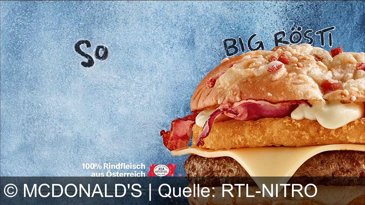 Werbung aus dem Jahr 2025 von Mcdonald's in Österreich, mit dem von uns gewählten Titel: "Big Rösti Burger ist zurück: Echter Wintergenuss mit 100% österreichischem Rindfleisch bei McDonald’s" mit der Kurzbeschreibung: "Der Big Rösti ist zurück: echter Wintergeschmack mit 100% österreichischem Rindfleisch – nur bei McDonald’s!". Diese Werbung thematisiert oder beinhaltet die Kategorien Fleisch, Lebensmittel, Pommes.