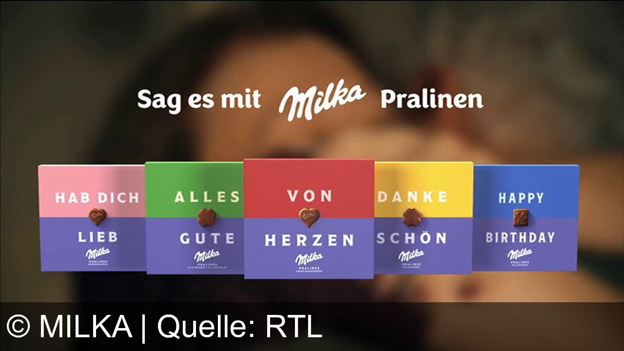 Milka Pralinen werden als Geschenk für besondere und alltägliche Momente beworben. Die verschiedenen Packungen mit Botschaften wie „Danke Schön“ und „Von Herzen“ vermitteln Wertschätzung, Liebe und Glück. Sag es mit Milka – Pralinen als persönliche Geste für jeden Anlass.