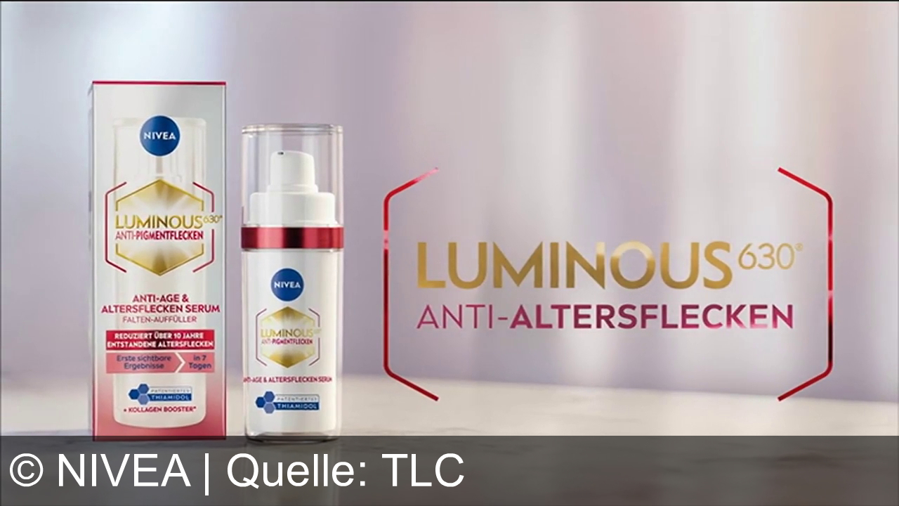 Werbung aus dem Jahr 2025 von Nivea in Österreich, mit dem von uns gewählten Titel: "NIVEA Luminous630° Serum: Reduziert Altersflecken und Falten für sichtbar jüngere Haut" mit der Kurzbeschreibung: "Strahlend schöne Haut mit NIVEA Luminous Anti-Altersflecken-Serum – reduziert Altersflecken und Falten sichtbar. Für jugendliche, straffe Haut. Jetzt entdecken!". Diese Werbung thematisiert oder beinhaltet die Kategorien Creme, Hautcreme, Pflege, Kosmetik.