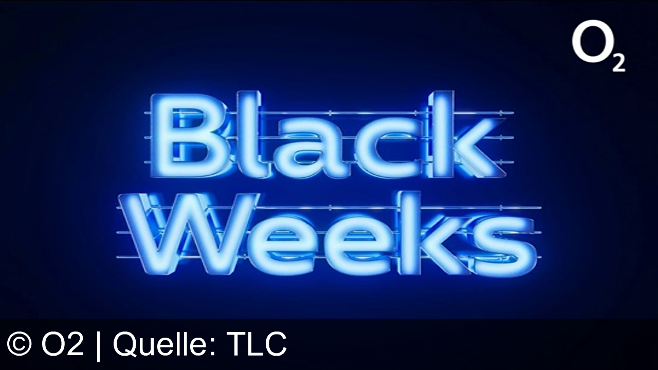 Leuchtende blaue Schrift "Black Weeks" auf dunklem Hintergrund. Im oberen rechten Eck steht "O₂" in Weiß.