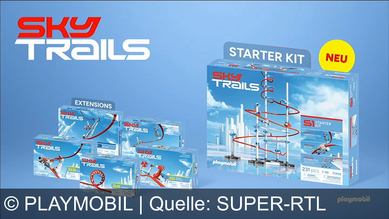 Werbung aus dem Jahr 2025 von Playmobil in Österreich, mit dem von uns gewählten Titel: "Mit dem neuen Sky Trails Bau- und Action-System von Playmobil Kugelbahnen kreativ gestalten" mit der Kurzbeschreibung: "Erlebe grenzenlosen Bauspaß mit dem neuen Sky Trails Starter Kit von Playmobil – entdecke die coolen Extensions für noch mehr Action und Kreativität!". Diese Werbung thematisiert oder beinhaltet die Kategorien Spielzeug, Spiele.