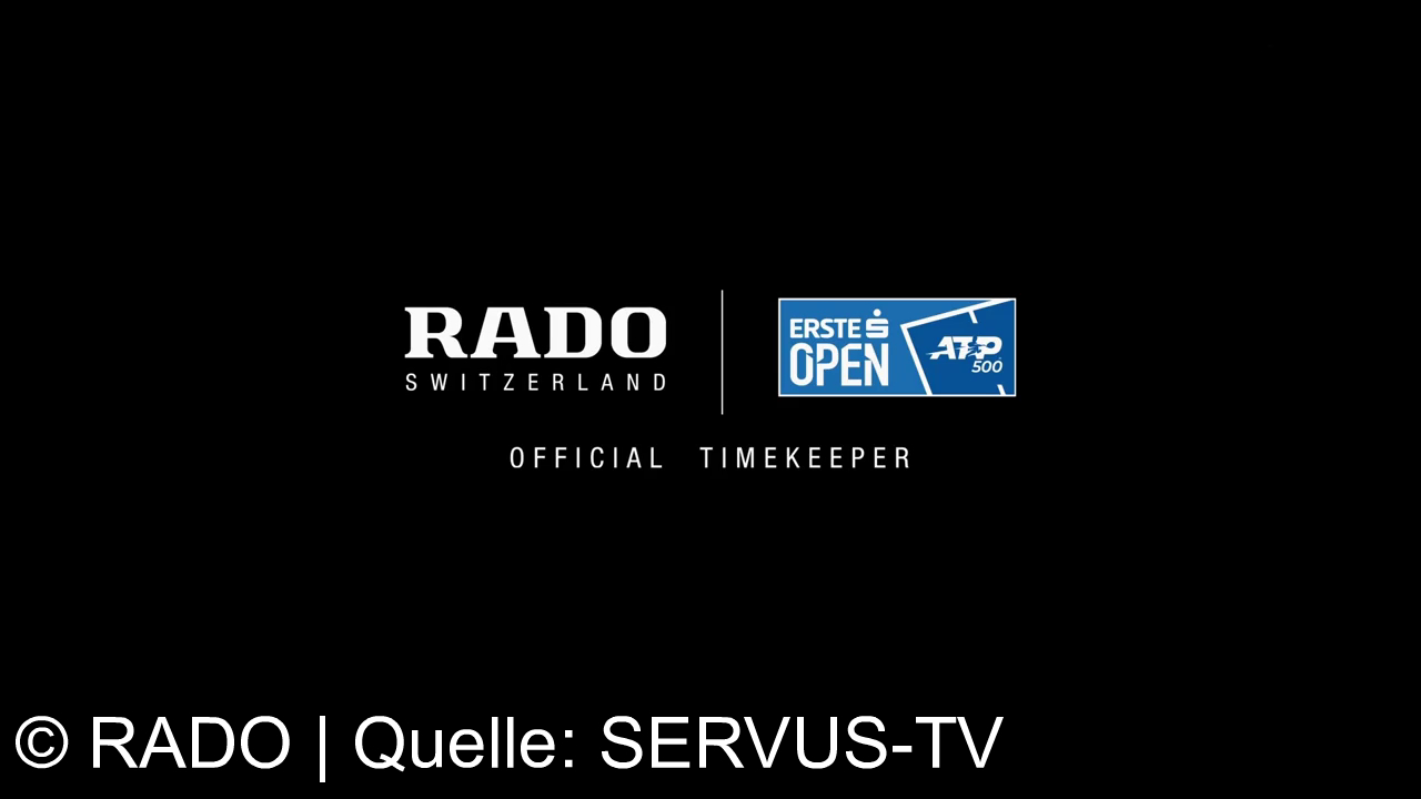 Schwarzer Hintergrund mit zwei Logos: links "RADO Switzerland" und rechts "ERSTE OPEN ATP 500". Darunter steht "OFFICIAL TIMEKEEPER".