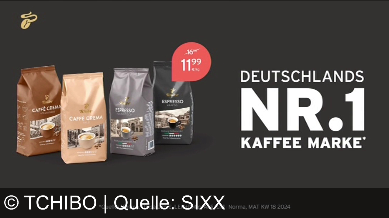 Werbung aus dem Jahr 2024 von Tchibo in Österreich, mit dem von uns gewählten Titel: "Tchibo Espresso & Caffè Crema: Deutschlands Nr. 1 Kaffeegenuss jetzt zum Angebotspreis von 11,99 €" mit der Kurzbeschreibung: "Tchibo bietet Espresso und Kaffee Crema nach individuellem Geschmack: kräftig oder mild. Genieße Deutschlands Nr. 1 Kaffee jetzt für 11,99€.". Diese Werbung thematisiert oder beinhaltet die Kategorien Kaffee.