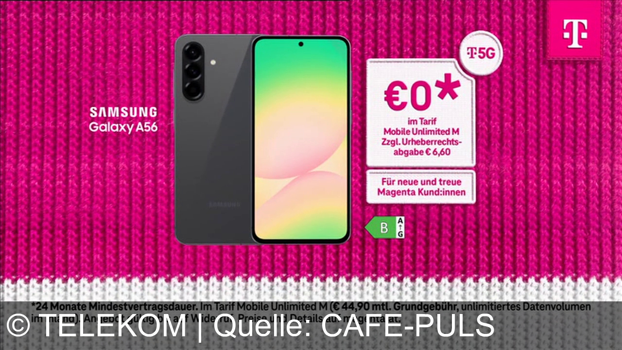 Die Telekom bewirbt das Samsung Galaxy A56 mit unlimitiertem Datenvolumen im Magenta-Tarif. Das Angebot gilt für neue und treue Kund:innen. Die Kampagne betont, dass Nachrichten verbinden und das unlimitierte Teilen zu Weihnachten Freude schenkt.