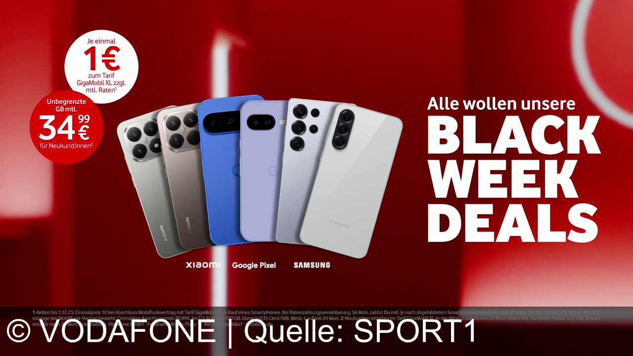 Vodafone bewirbt in seinem TV-Spot die Black Week Deals: Unlimited Datenvolumen für nur 34,99 € statt 79,99 € pro Monat sowie Top-Smartphones von Samsung, Google Pixel und Xiaomi für nur 1 €. Die zentrale Botschaft: Alle wollen diese attraktiven Mega-Deals.