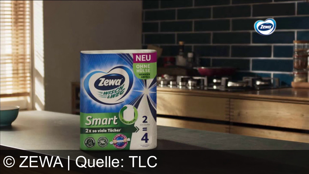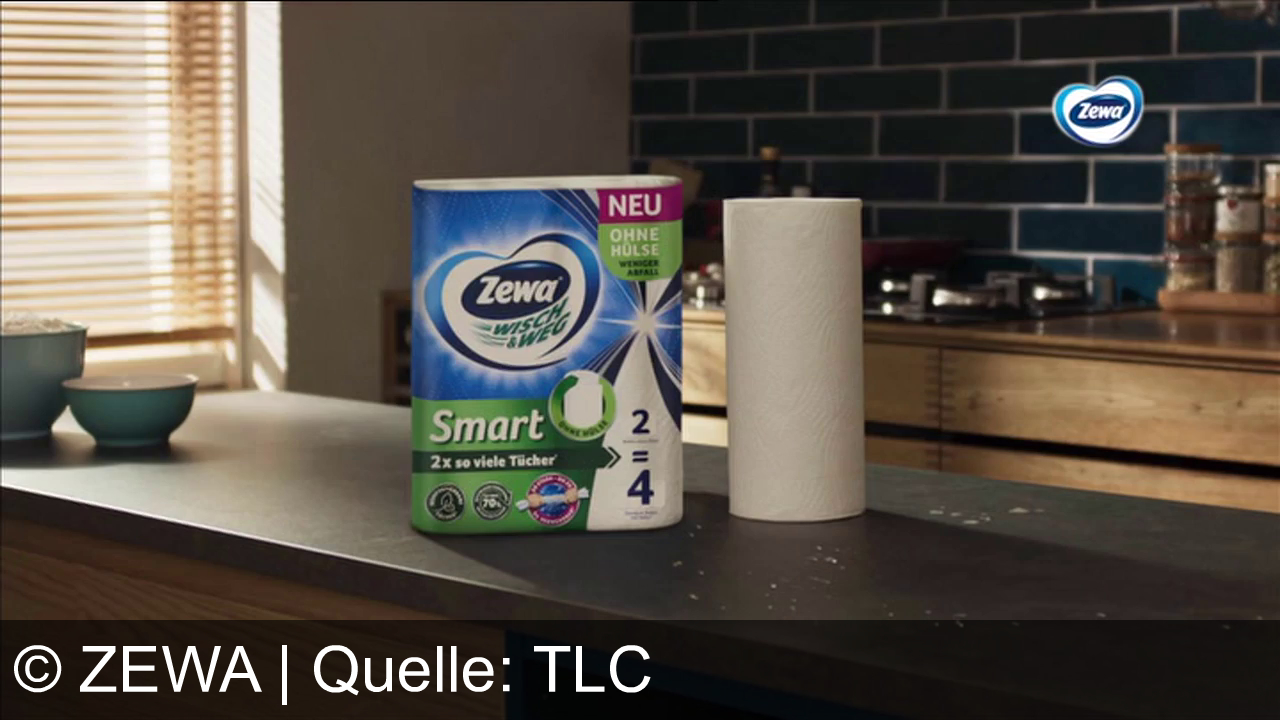 Zewa Werbung aus dem Jahr 2026 in Österreich, mit dem von uns gewählten Titel: "Zewa Wisch&Weg Smart: Doppelte Tücher, null Papphülse – smarter wischen." mit der Kurzbeschreibung: "Zewa Wisch und Weg Smart: Die Küchenrolle ohne Papphülse, mit doppelt so vielen Tüchern für weniger Abfall und ein gutes Gefühl.". Diese Werbung thematisiert oder beinhaltet die Kategorie/n Haushaltswaren