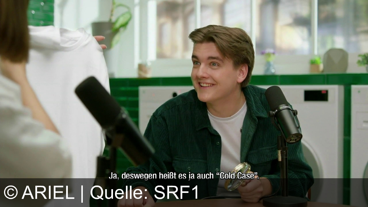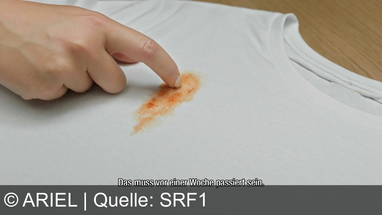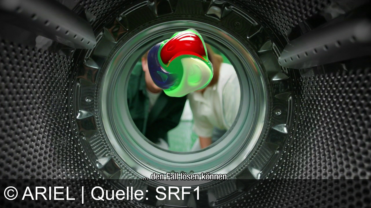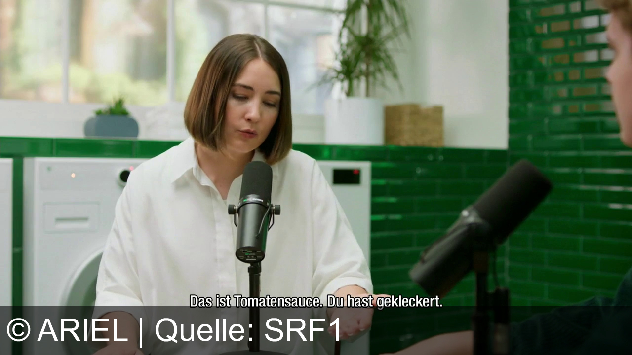 Werbung aus dem Jahr 2024 von Ariel in der Schweiz, mit dem von uns gewählten Titel: "Ariel All-in-1 Pods: Entfernen von Tomatenflecken bei 30 Grad - Humorvoll im Podcast-Setting!" mit der Kurzbeschreibung: "Ariel Pods mit Fleckenentferner bewältigen selbst eingetrocknete Tomatensaucenflecken bei 30 Grad. Der Spot betont die Effizienz bei niedrigen Temperaturen und spielt mit dem Begriff "Cold Case". Sicherheitshinweis: Außerhalb der Kinderreichweite lagern. Infos auf keepcapsfromkids.eu.". Diese Werbung thematisiert oder beinhaltet die Kategorie/n Waschmittel.