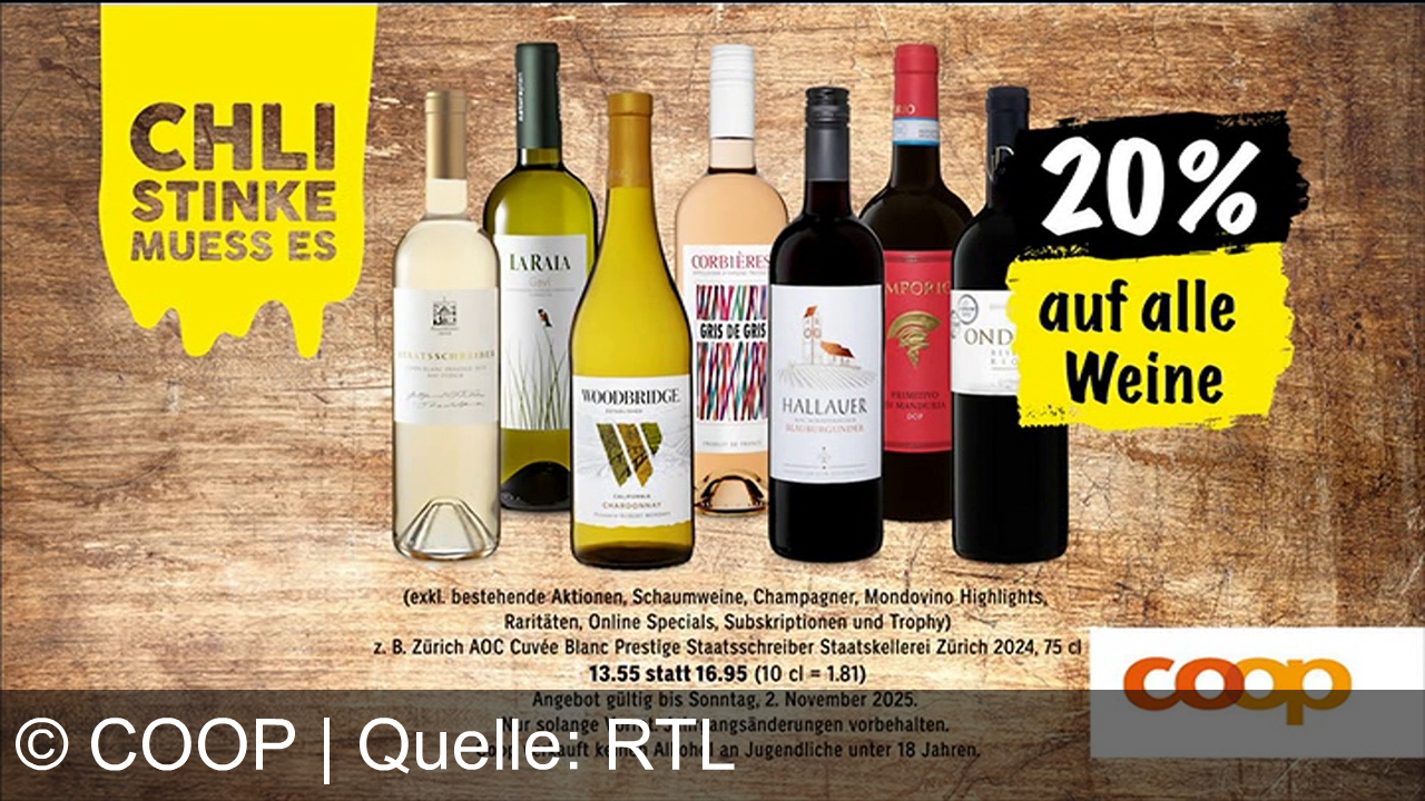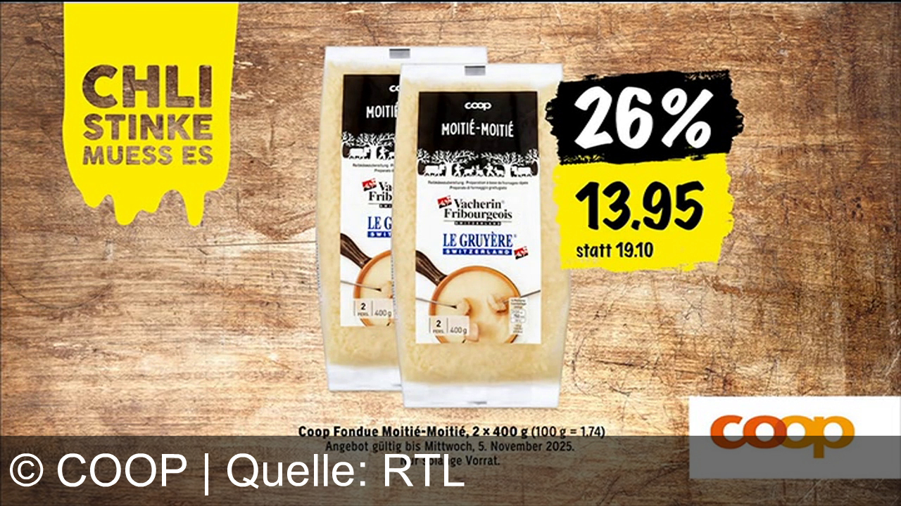Coop bietet aktuell 26% Rabatt auf Coop-Fondue Moitié-Moitié, 20% auf alle Weine und 30% auf ausgewählte Kaffeemarken ab 2 Stück – z.B. Starbucks, Lavazza, Chicco d’Oro. Angebote gültig bis 5.11.2025, solange Vorrat. Coop – Für mich und dich!