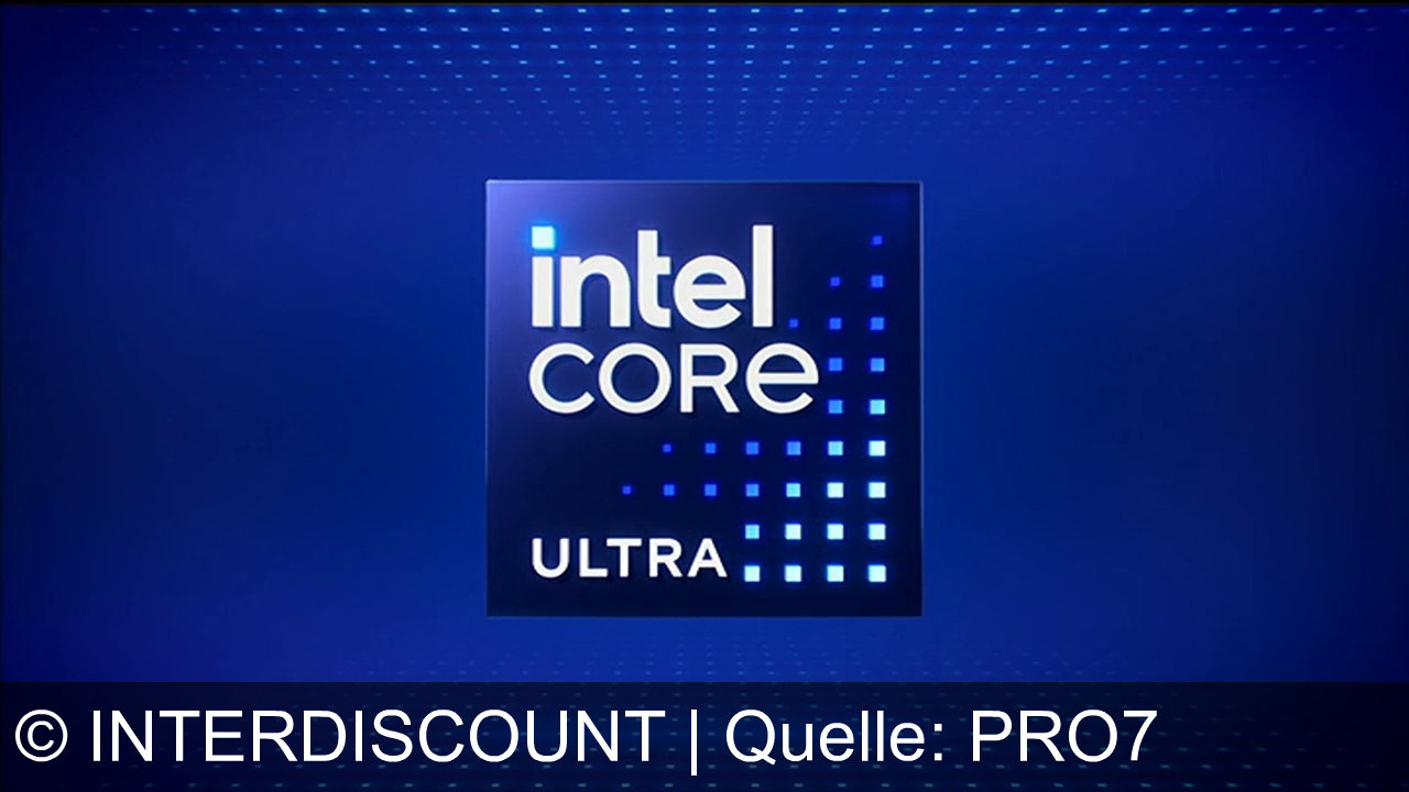 Blauer Hintergrund mit leuchtenden Pixelpunkten, in der Mitte ein dunkles Quadrat mit dem weiĂźen Schriftzug intel core und dem Zusatz ULTRA.