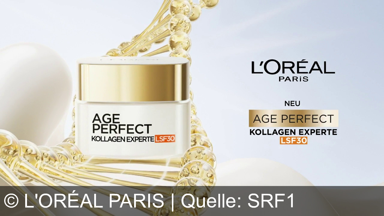 L'oréal Paris Werbung aus dem Jahr 2026 in der Schweiz, mit dem von uns gewählten Titel: "L'Oréal Age Perfect Kollagen Experte: Straffere Haut & Schutz vor Altersflecken – genau jetzt!" mit der Kurzbeschreibung: "L'Oréal Paris Age Perfect: Mit Mikro-Kollagenpeptid gegen Altersflecken für straffe Haut. Das perfekte Alter ist jetzt.". Diese Werbung thematisiert oder beinhaltet die Kategorie/n Creme, Hautcreme, Kosmetik, Pflege, Sonnencreme