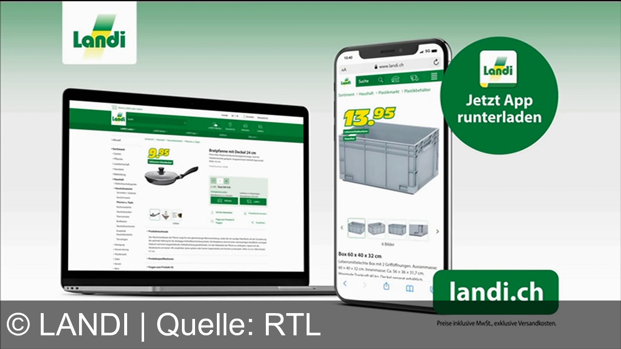 Werbung aus dem Jahr 2025 von Landi in der Schweiz, mit dem von uns gewählten Titel: "Landi Tiefpreis-Hits: Bratpfanne für 9.95 Fr. und Box für 13.95 Fr. Jetzt auf landi.ch sichern" mit der Kurzbeschreibung: "Landi Tiefpreis-Hits: Bratpfanne mit Deckel für 9.95, stapelbare Box für 13.95. Top-Qualität, immer günstig. Jetzt auf landi.ch bestellen oder App herunterladen!". Diese Werbung thematisiert oder beinhaltet die Kategorie/n Pfanne, Onlineshop, Apps.