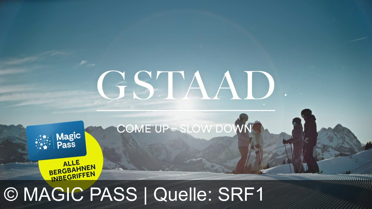Werbung aus dem Jahr 2025 von Magic Pass in der Schweiz, mit dem von uns gewählten Titel: "Magic Pass: Unbegrenzter Zugang zu allen Bergbahnen in Gstaad für unvergessliche Familienabenteuer" mit der Kurzbeschreibung: "Erlebe unvergessliche Abenteuer in Gstaad mit Magic Pass – alle Bergbahnen inklusive. Ski, Snowboard, Familie, Entspannung: GSTAAD, COME UP – SLOW DOWN!". Diese Werbung thematisiert oder beinhaltet die Kategorie/n Ski, Urlaub Reisen.
