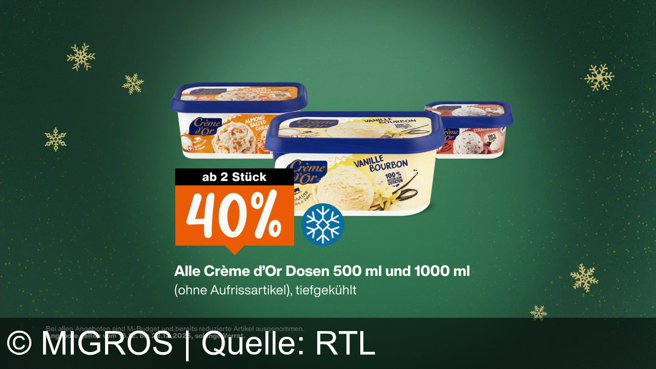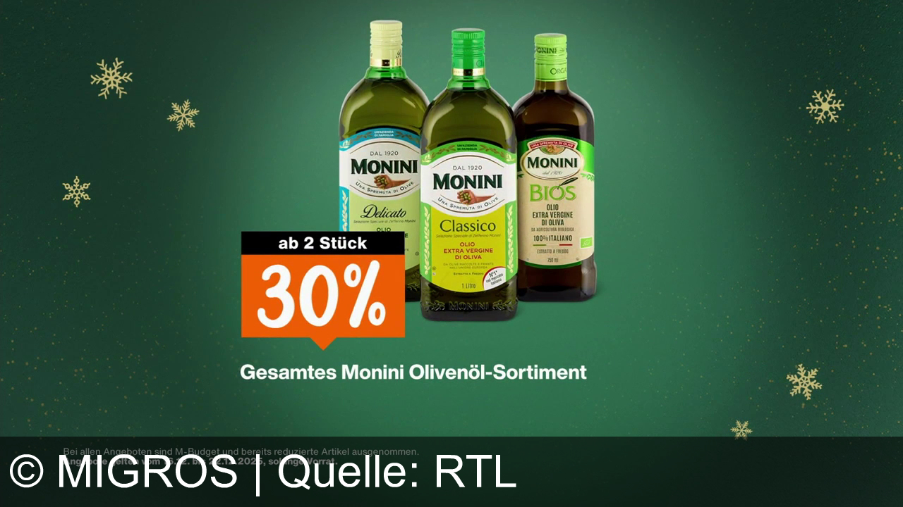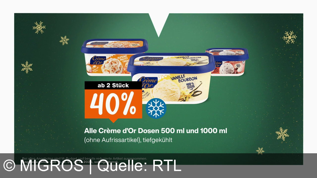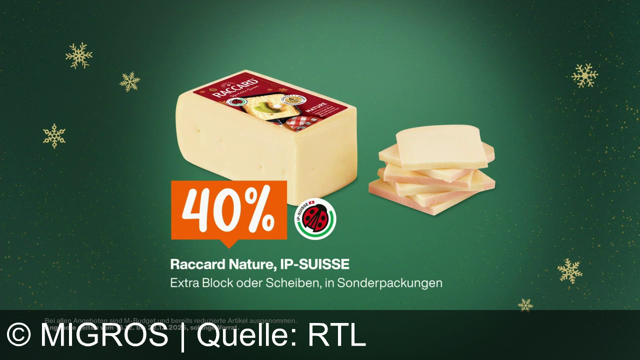 Migros bewirbt attraktive Aktionen: 40% Rabatt auf Raccard Nature Käse, 30% auf Monini Olivenöl ab zwei Stück und 40% auf Crème d’Or Eiscreme ab zwei Stück. Die Angebote gelten vom 16. bis 22.12.2025 und laden zum Sparen und Feiern ein.