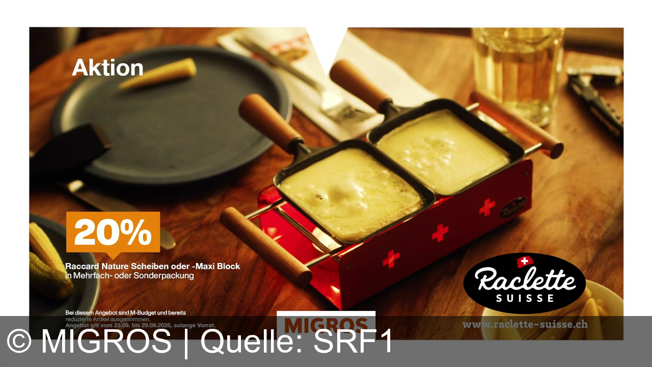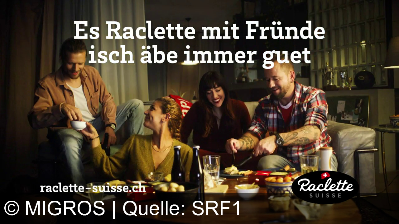 Der TV-Spot bewirbt Raclette Suisse Käse und das gesellige Raclette-Erlebnis mit Freunden. Migros bietet aktuell 20% Rabatt auf Raccard Nature Raclettekäse. Die Werbebotschaft: Raclette gemeinsam genießen ist immer gut – und jetzt besonders günstig bei Migros.
