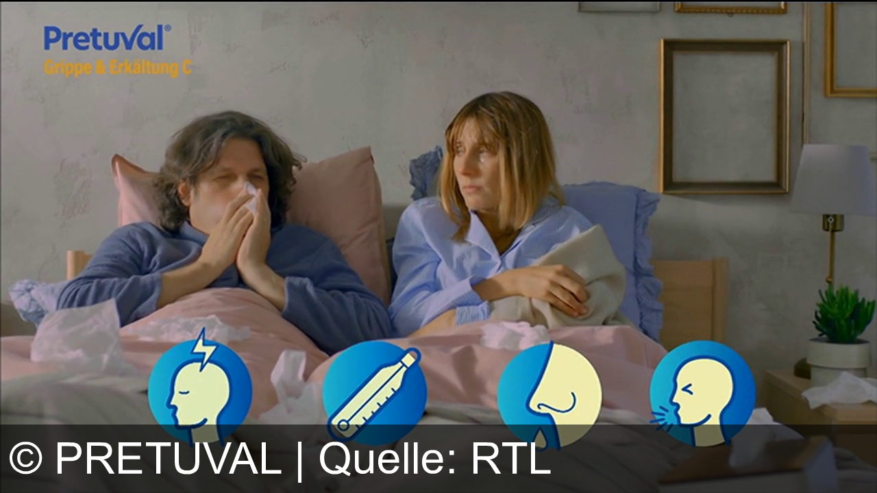 Aus meiner Sicht ist der Spot von Pretuval Grippe & Erkältung C recht klassisch gestaltet – was sicher auch zur Zielgruppe passt, die bei Erkältungsmitteln vermutlich eher bei Erwachsenen oder Eltern verortet wird. Die Szenen im Schlafzimmer mit zerzausten Haaren, verstreuten Taschentüchern und allgemeinem Chaos finde ich persönlich recht gelungen, weil sie ziemlich authentisch den Ausnahmezustand bei einer Grippe widerspiegeln.