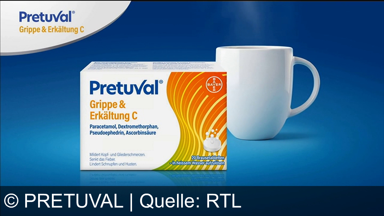 Pretuval Grippe & Erkältung C von Bayer lindert Kopf- und Gliederschmerzen, Fieber, Schnupfen und Reizhusten schnell und effektiv, sodass Sie im Alltag weiter für Ihre Familie da sein können. Lassen Sie sich beraten und lesen Sie die Packungsbeilage.