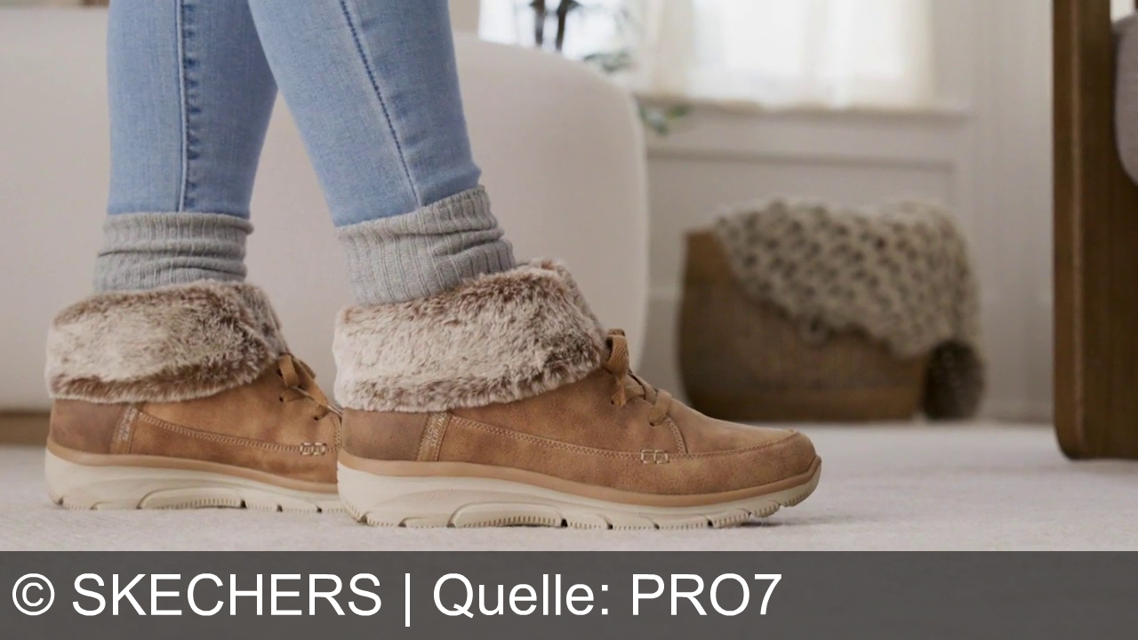Werbung aus dem Jahr 2025 von Skechers in der Schweiz, mit dem von uns gewählten Titel: "Skechers Hands-Free Slip-Ins Boots: Bequemes Anziehen ohne Bücken dank innovativer Technologie" mit der Kurzbeschreibung: "Mit den neuen Skechers Slip-Ins Boots schlüpfst du freihändig und bequem in stylische Schuhe – egal ob zuhause, in der Stadt oder in den Bergen. Jetzt entdecken auf SKECHERS.CH!". Diese Werbung thematisiert oder beinhaltet die Kategorie/n Schuhe, Damenschuhe.
