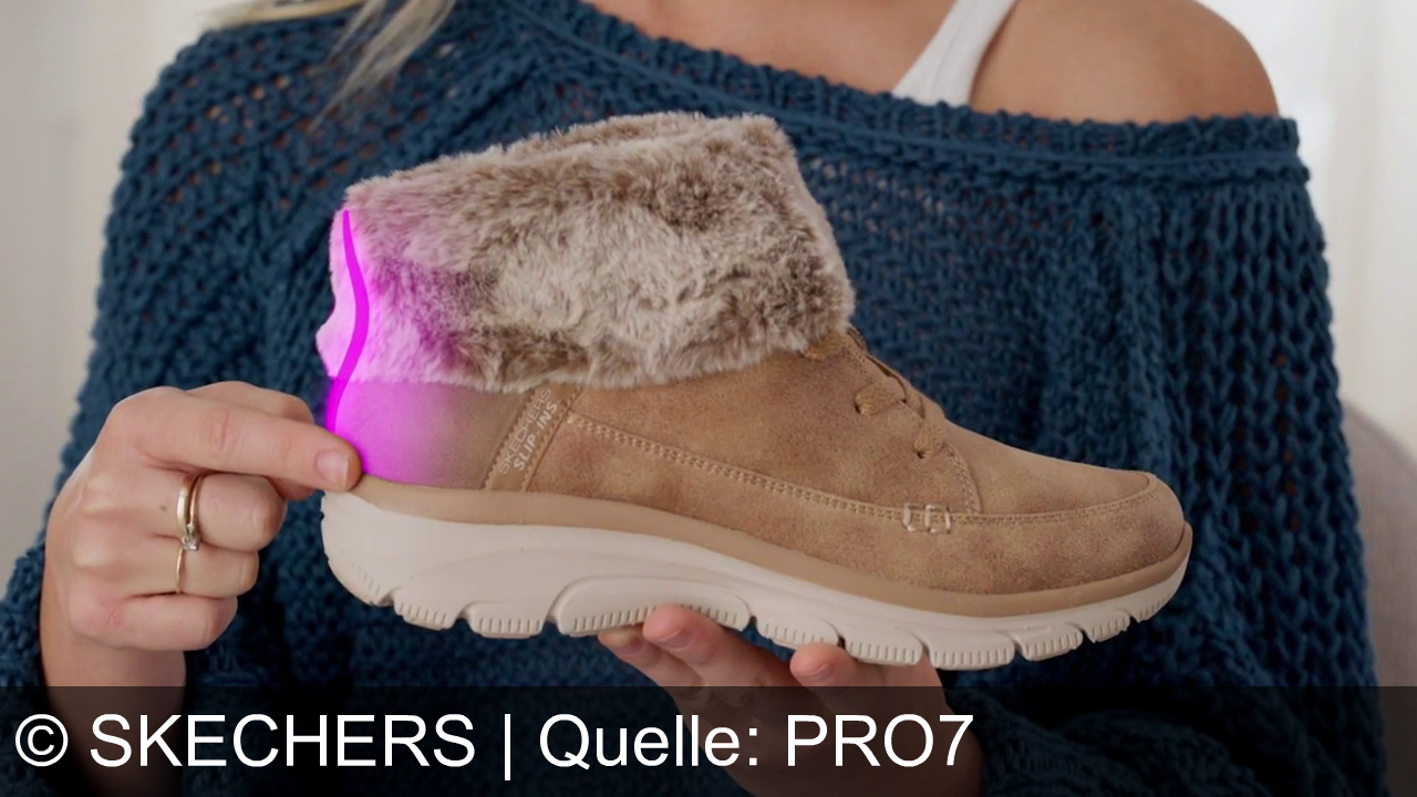 Die neuen Skechers Hands-Free Slip-Ins Boots lassen sich dank innovativer Technologie ganz einfach ohne Bücken an- und ausziehen. Die beworbene Dienstleistung: bequemes, schnelles Hineinschlüpfen – praktisch wie mit einem unsichtbaren Schuhlöffel.