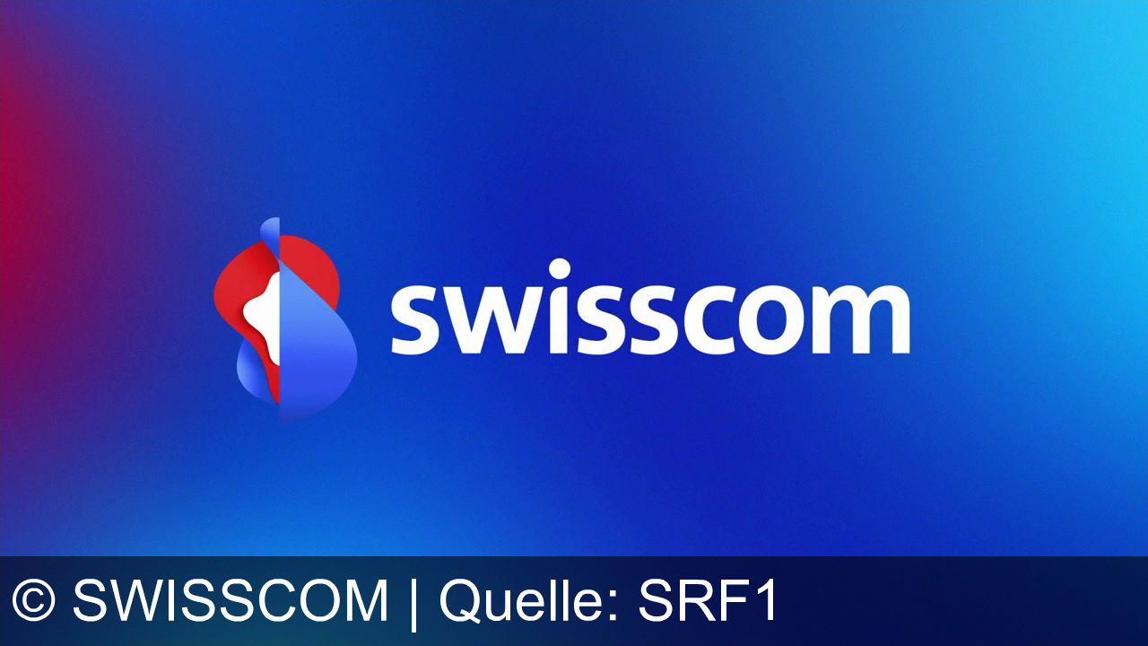 Blauer Hintergrund mit dem Swisscom-Logo in der Mitte. Links das ikonische Logo-Symbol in Rot und Blau, rechts daneben in weiĂźer Schrift das Wort "swisscom".