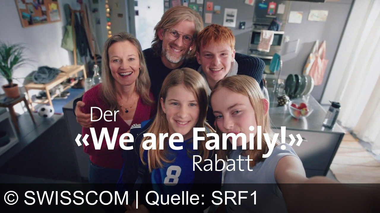 Mit dem "We Are Family Rabatt" von Swisscom erhält man ein Mobilfunkabo zum Normalpreis und bis zu vier weitere Abos – neu auch für Blue Kids Mobile – zum halben Preis. Die Werbebotschaft: Top-Mobilfunknetz zu attraktiven Konditionen für Familien und Gruppen.
