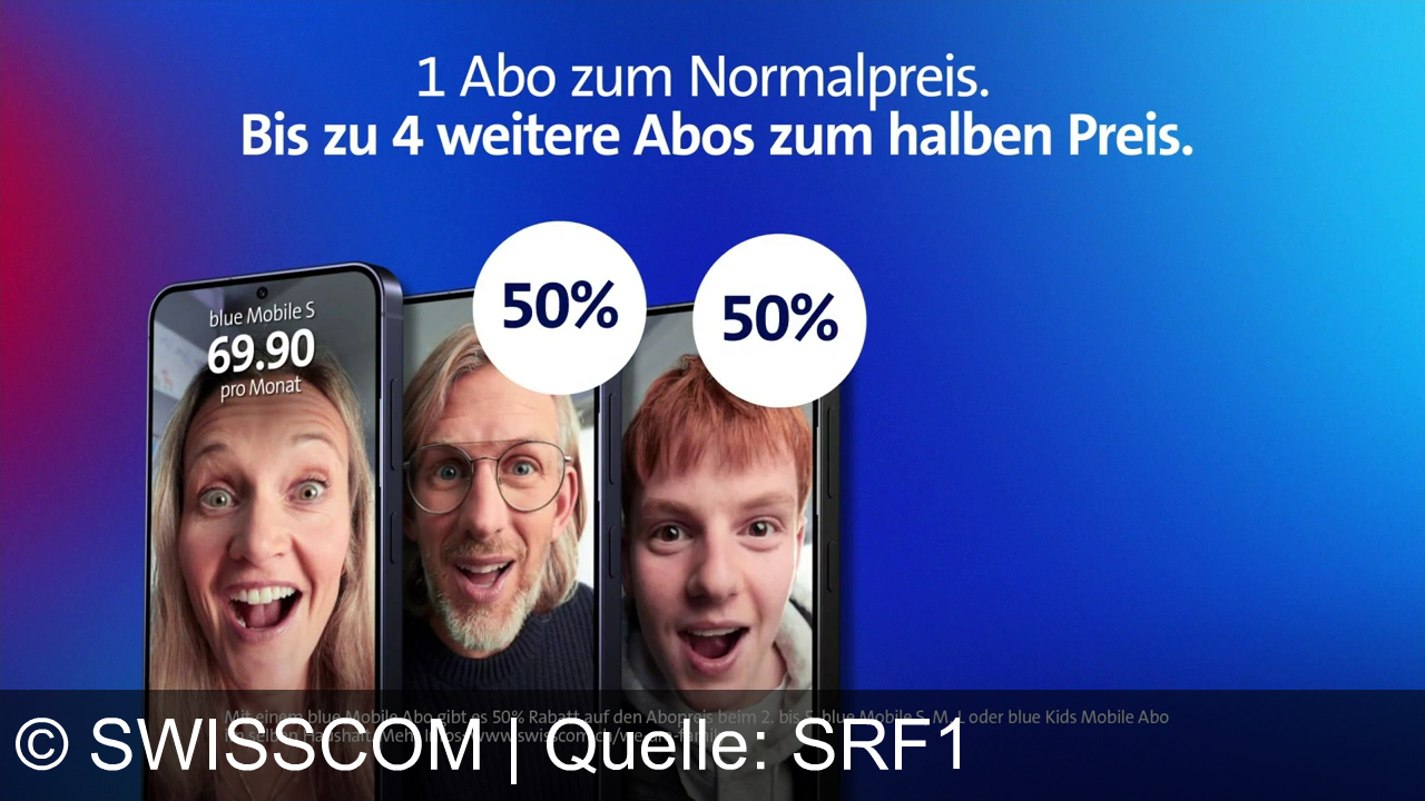 Werbung aus dem Jahr 2026 von Swisscom in der Schweiz, mit dem von uns gewählten Titel: "Swisscom We Are Family Rabatt: Mobilfunkabos für die ganze Familie zum halben Preis sichern" mit der Kurzbeschreibung: "Gemeinsam sparen mit Swisscom: We Are Family Rabatt – ein Abo zum Normalpreis, bis zu vier weitere zum halben Preis. Jetzt neu auch für Blue Kids Mobile! Entdecke, was du kannst.". Diese Werbung thematisiert oder beinhaltet die Kategorie/n Handy-Smartphone, Mobilfunkvertrag, Rabatt, Internetverträge-Dsl, Prepaid.