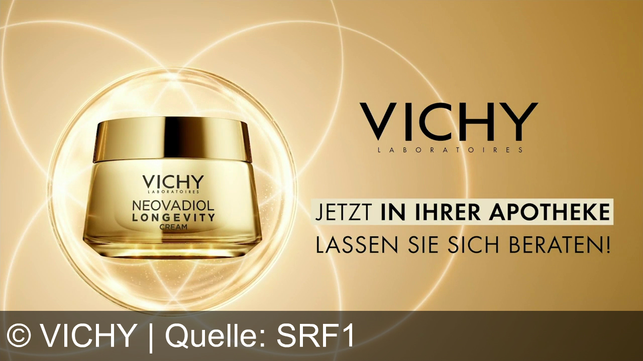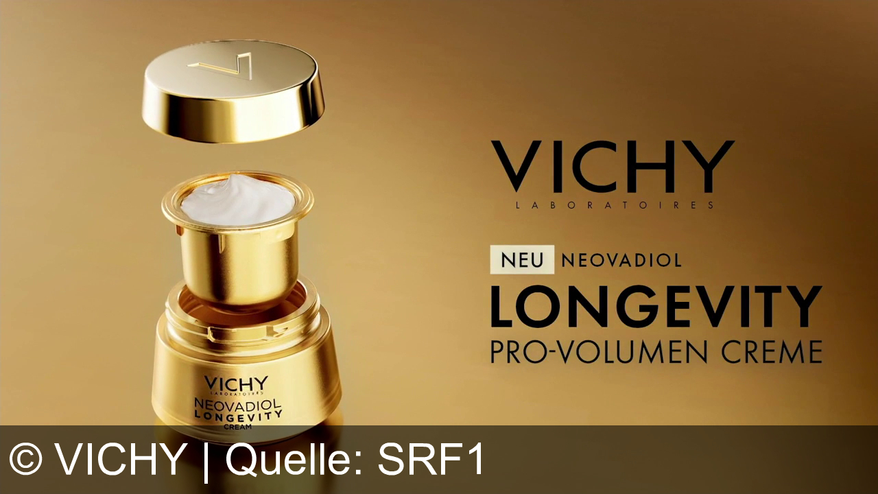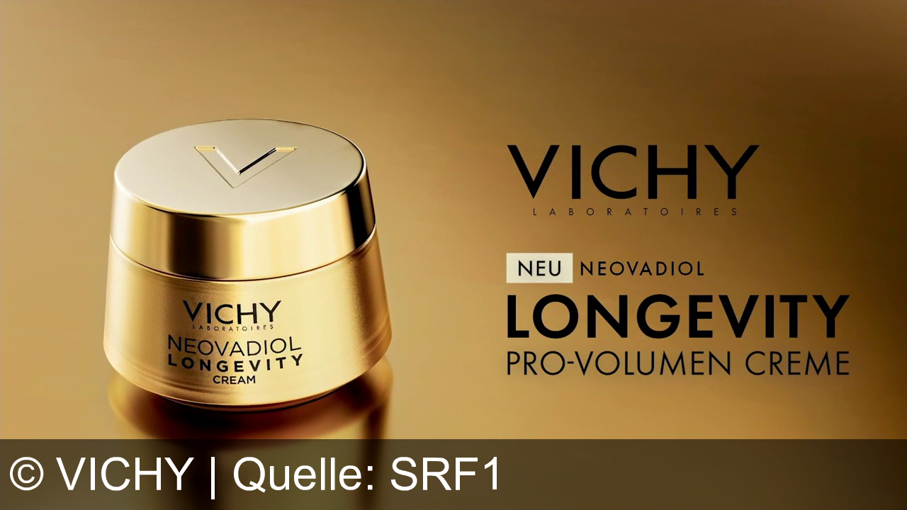 Werbung aus dem Jahr 2025 von Vichy in der Schweiz, mit dem von uns gewählten Titel: "Vichy Neovadiol Longevity: Mehr Volumen und Pflege für reife Haut dank innovativer Technologie" mit der Kurzbeschreibung: "Neovadiol Longevity von Vichy – für sichtbar prallere Haut ab 50. Entdecke die Kraft der Longvisia-Technologie jetzt in deiner Apotheke!". Diese Werbung thematisiert oder beinhaltet die Kategorie/n Hautcreme, Creme, Apotheke, Pflege, Kosmetik.
