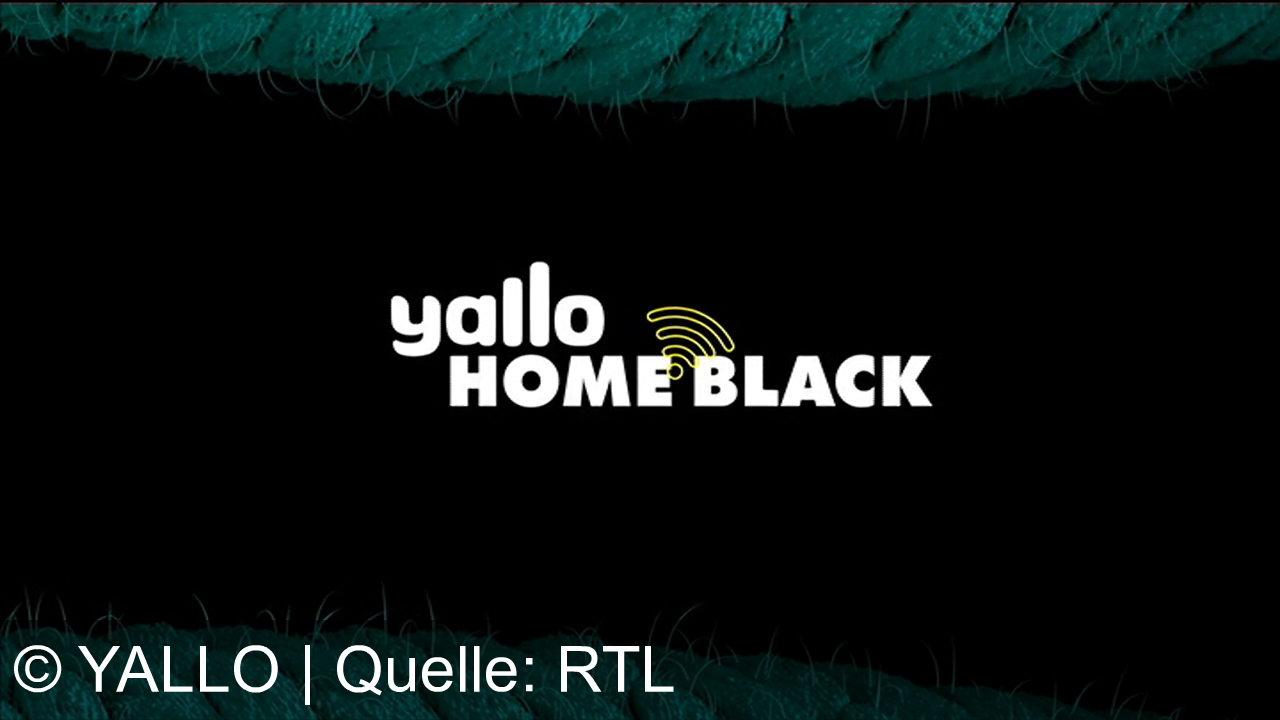 Schwarzer Hintergrund mit dem Schriftzug „yallo HOME BLACK“ in Weiß und Gelb. Oben und unten grüne Seiltexturen.