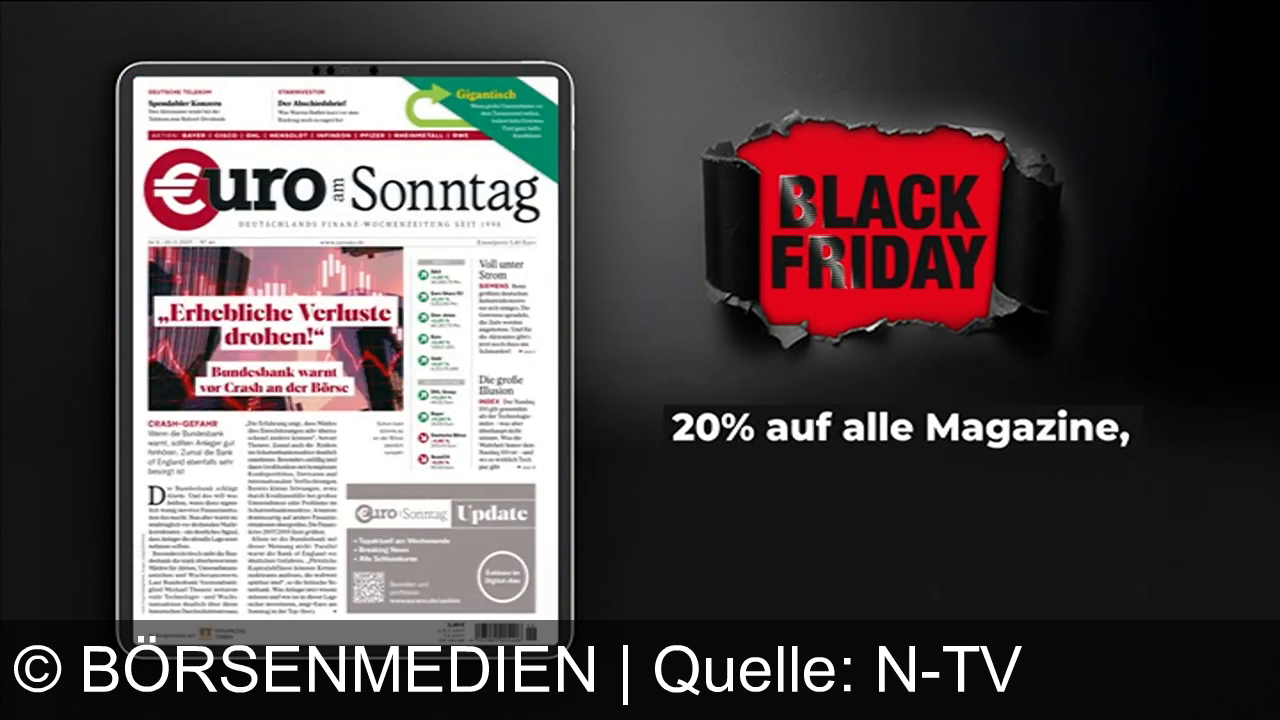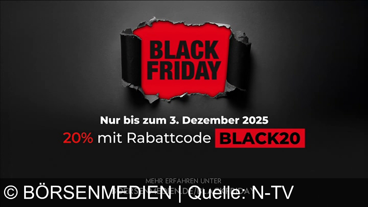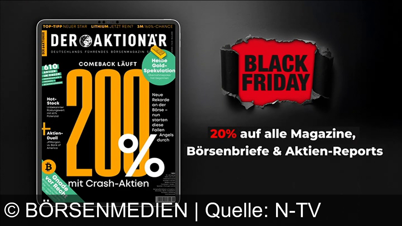 Börsenmedien bewirbt zum Black Friday 20% Rabatt auf alle Finanzmagazine, Börsenbriefe und Aktienreports wie "Der Aktionär" und "Börse Online". Die Werbeaussage: Jetzt Top-Börsenwissen günstiger sichern – nur bis 3. Dezember mit dem Code BLACK20 auf boersenmedien.de/BlackFriday.