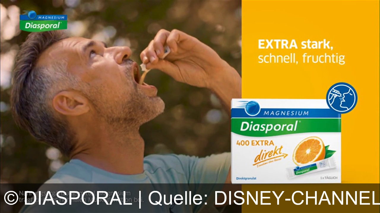 Werbung aus dem Jahr 2025 von Diasporal in Deutschland, mit dem von uns gewählten Titel: "Magnesium Diasporal 400 EXTRA – Extra starke Unterstützung für deine Muskeln, schnell und fruchtig" mit der Kurzbeschreibung: "Starte mit Diasporal® Magnesium 400 EXTRA – extra stark, schnell, fruchtig. Für starke Muskeln und neue Ziele. Jetzt Magnesiumbedarf berechnen auf diasporal.com!". Diese Werbung thematisiert oder beinhaltet die Kategorie/n Nahrungsergänzung, Gesundheit, Vitamine, Fitness.