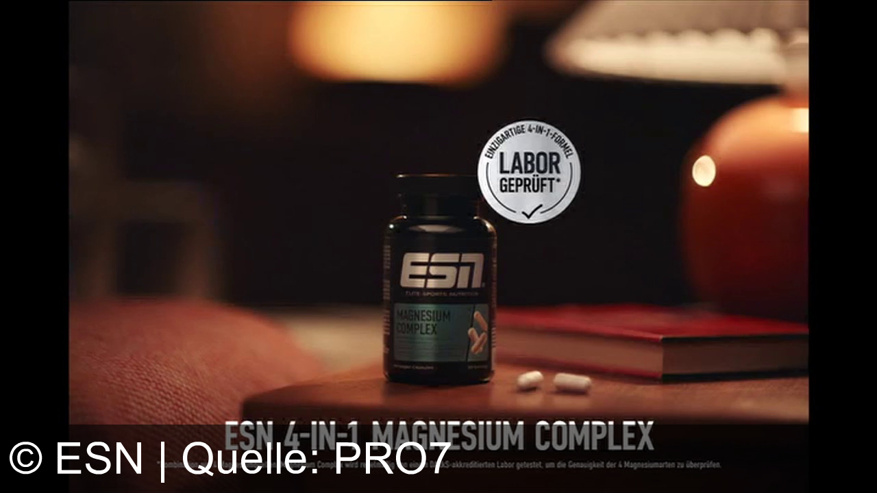 Der TV-Spot bewirbt den ESN 4-in-1 Magnesiumkomplex, ein wissenschaftlich geprüftes Nahrungsergänzungsmittel für Sport und Alltag. ESN verspricht mit dem Produkt verbesserte Leistungsfähigkeit und Regeneration – für echte Performance im täglichen Leben und Training.